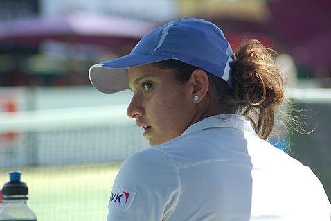Sania Mirza of India takes a break during her first round match. TENNIS AUSTRALIA
