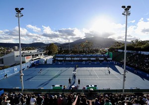 The sun goes down as Virginie Razzano and Petra Kvitova compete. GETTY IMAGES