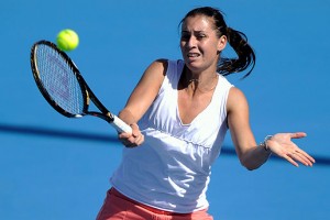 Flavia Pennetta of Italy returns a shot during her doubles match against Natalie Grandin and Abigail Spears. GETTY IMAGES
