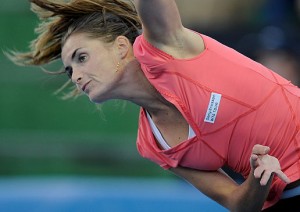 Iveta Benesova hammers down a serve. GETTY IMAGES