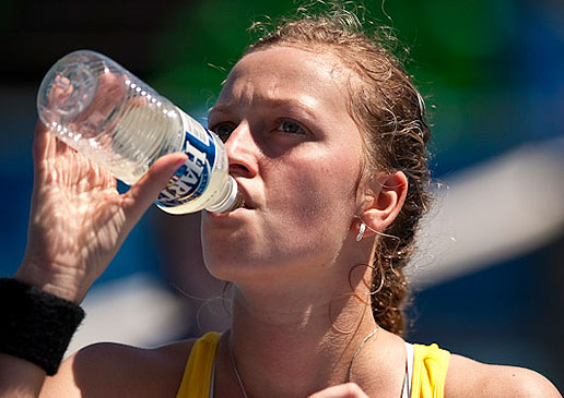 Petra Kvitova hydrates during her second round qualifying match. © David Clifford