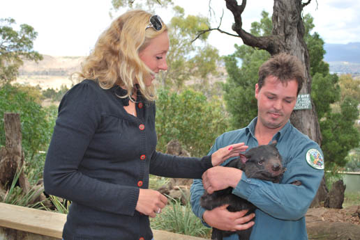 Anastasia Rodionova petting a Tasmanian Devil at Bonorong Wildlife Sanctuary
