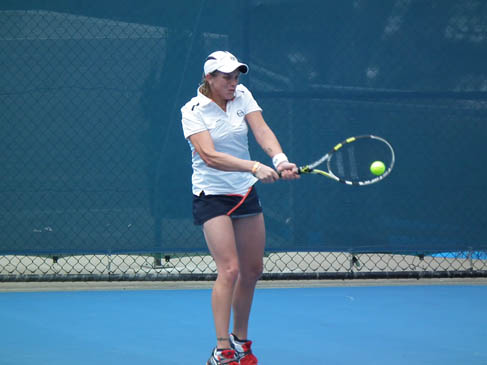 Romina Oprandi hitting a backhand in her first match against Lesia Tsurenko.