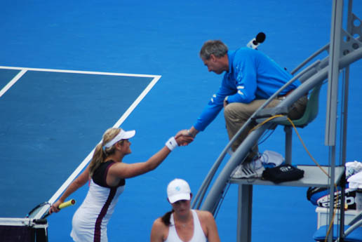 Aleksandra Wozniak thanking the umpire. Credit: Kaytie Olsen