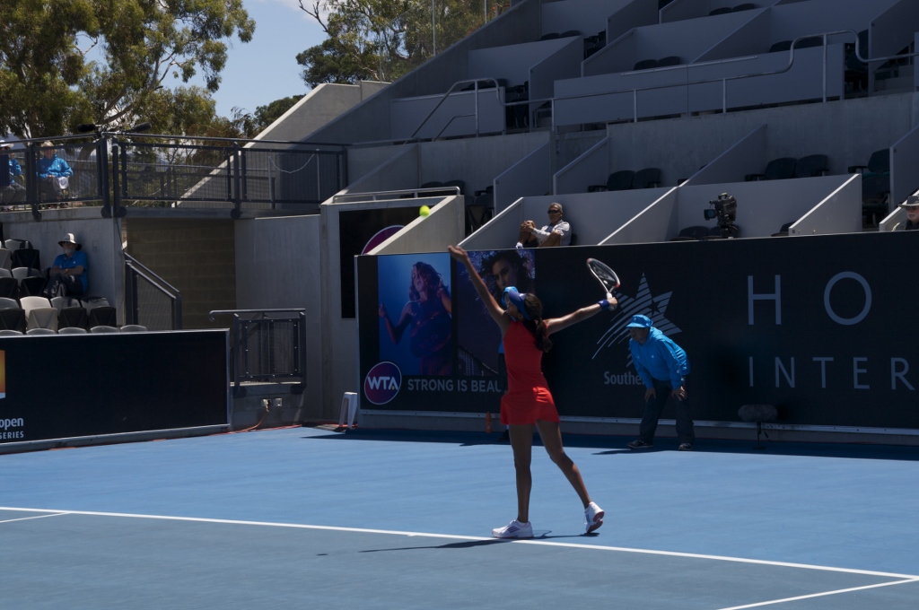 Naiktha Bains in action during round one of Hobart International qualifying. Picture: Casey Gardener