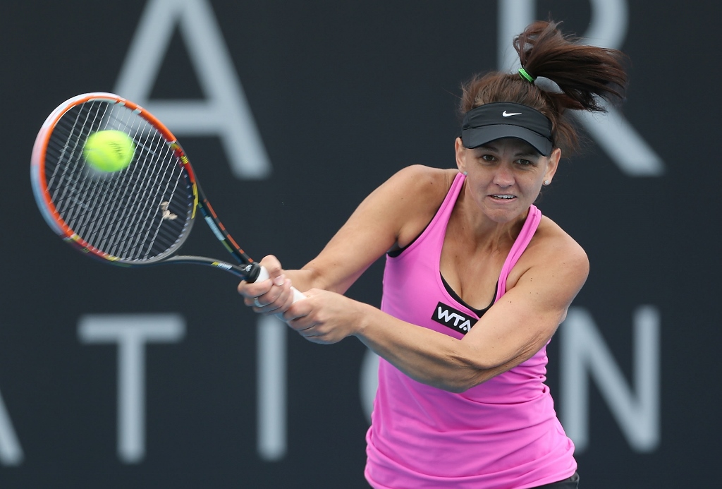 Australian Casey Dellacqua is in action on day three of the 2014 Hobart International. Picture: Getty Images