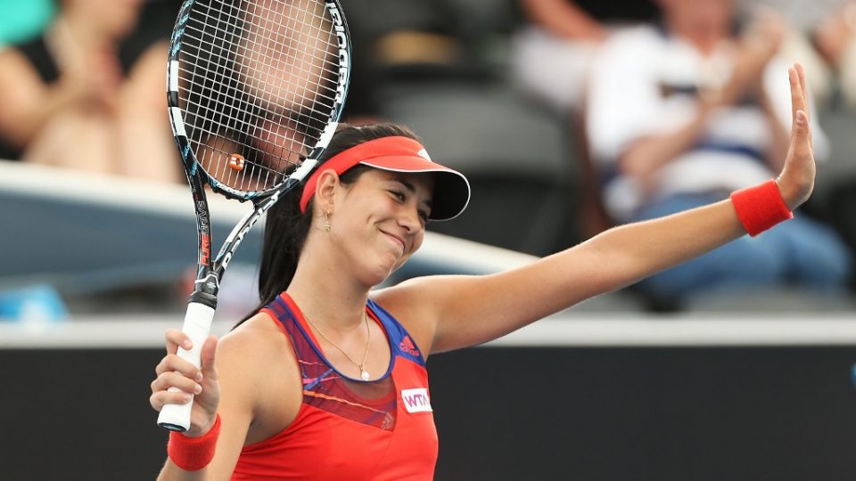 A happy Garbine Muguruza celebrates her semi-final victory. Picture: Getty Images
