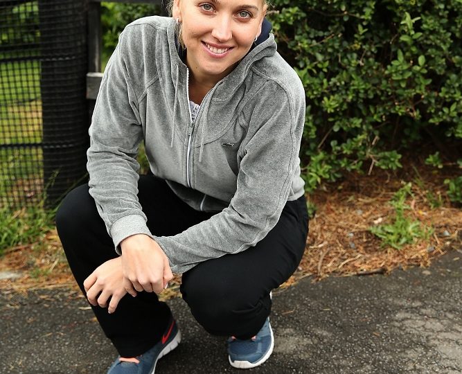 Defending champion Elena Vesnina was happy to find her champion poster at the end of the Champion’s Walk. Picture: Getty Images