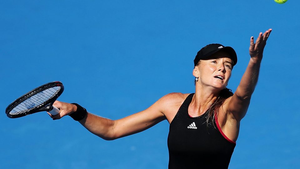 AUCKLAND, NEW ZEALAND – JANUARY 05: Daniela Hantuchova of Slovakia serves against Sara Errani of Italy during day one of the 2015 ASB Classic at ASB Tennis Centre on January 5, 2015 in Auckland, New Zealand. (Photo by Anthony Au-Yeung/Getty Images)