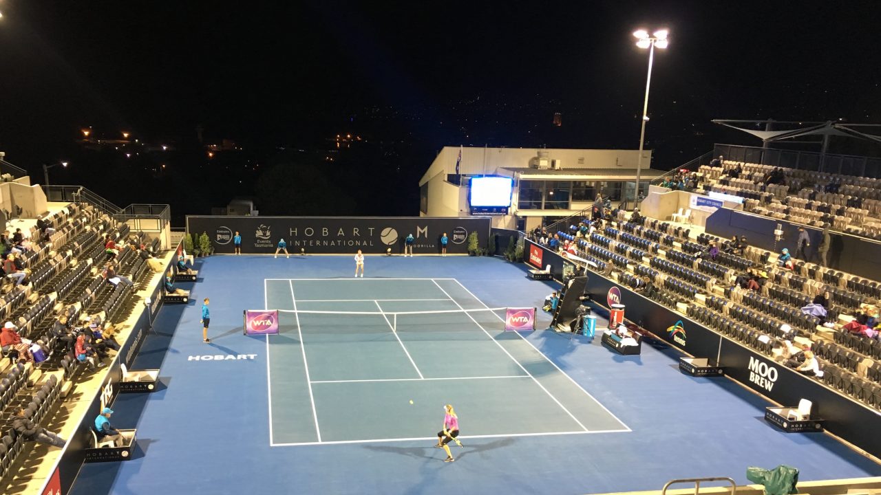 UNDER LIGHTS: Canadian Eugenie Bouchard eliminates second seed Camila Giorgi in late quarterfinal finish. Picture: Leigh Rogers