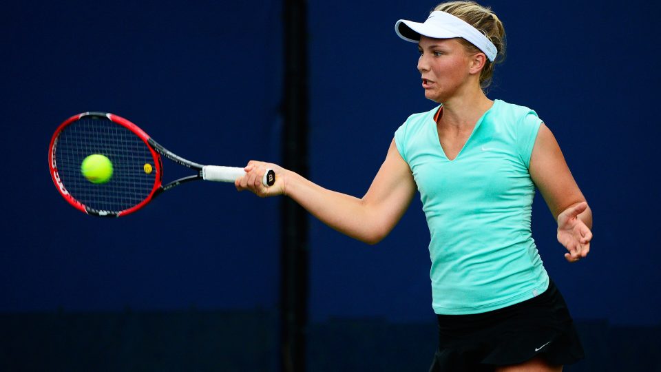 NEW YORK, NY – SEPTEMBER 10: Maddison Inglis of Australia returns a shot to Usue Maitane Arconada of the USA and Maia Lumsden of Great Britain while playing with Kimberly Birrell of the Australia during their Junior Girls’ Doubles Quarterfinals match on Day Eleven of the 2015 US Open at the USTA Billie Jean King National Tennis Center on September 10, 2015 in the Flushing neighborhood of the Queens borough of New York City. (Photo by Alex Goodlett/Getty Images)