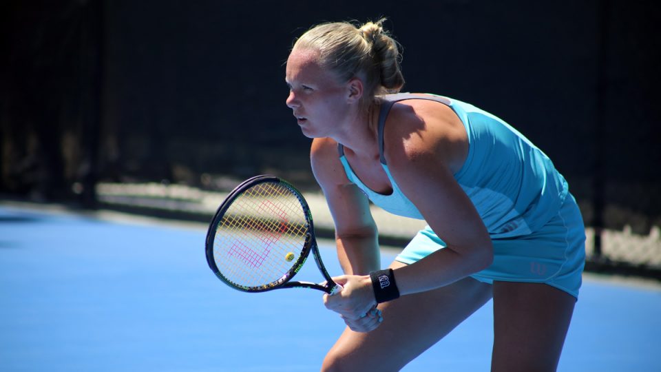 Dutchwoman Kiki Bertens prepares to return during her final qualifying round match. Picture: Kaytie Olsen