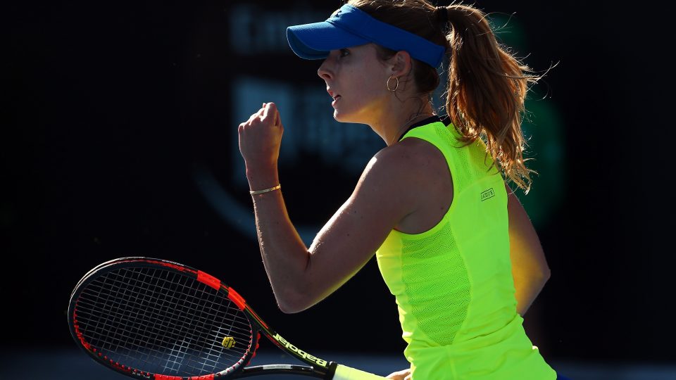 HOBART, AUSTRALIA – JANUARY 15: Alize Cornet of France celebrates a point in the semi-final singles match against Johanna Larsson of Sweden during day six of the 2016 Hobart International at the Domain Tennis Centre on January 15, 2016 in Hobart, Australia. (Photo by Robert Cianflone/Getty Images)
