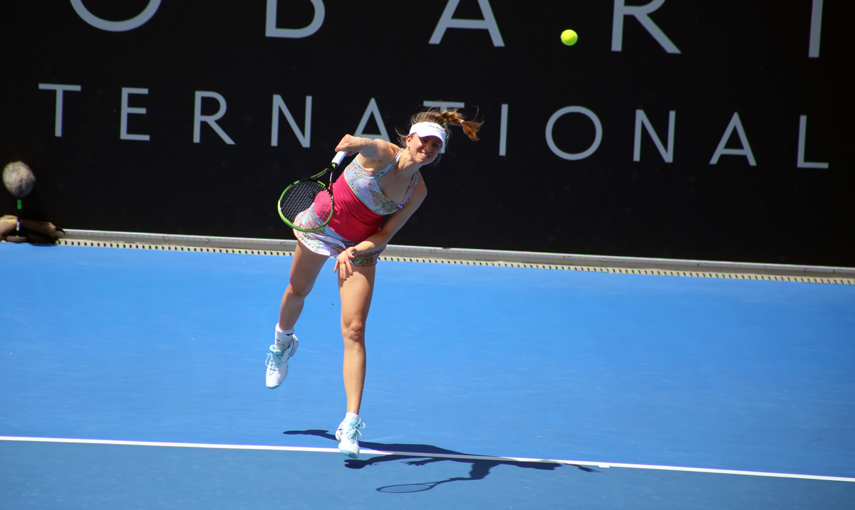 FIGHTING THROUGH: German Mona Barthel battled through a tough second round today. Picture: Kaytie Olsen