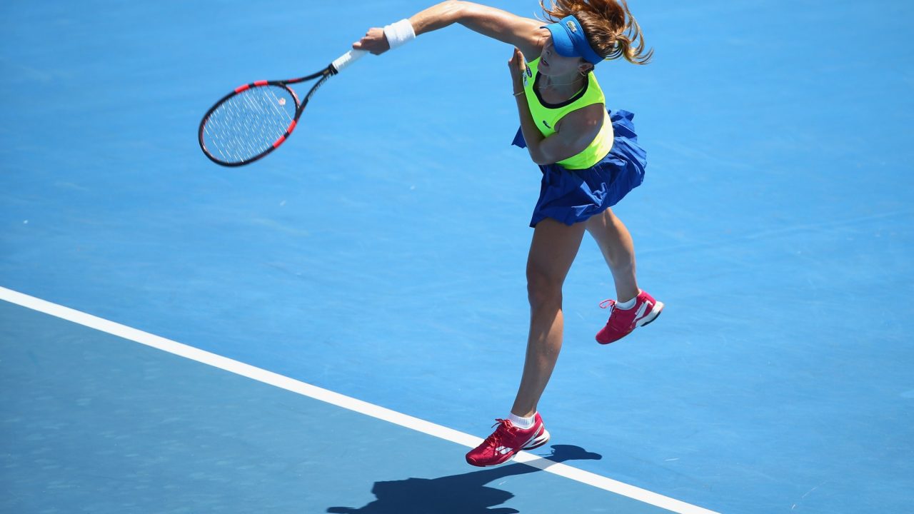 HAVING FUN: Frenchwoman Alize Cornet fires down a serve in her round one match at Hobart International 2016. Picture: Getty Images