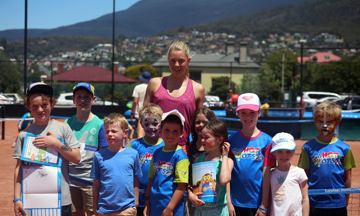NEW FAN FAVOURITE: German Carina Witthöeft was popular during yesterday’s Kids Tennis Day at the Domain Tennis Centre. Picture: Kaytie Olsen