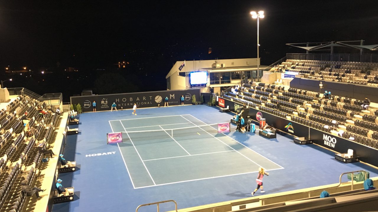 EARLY MORNING: It was after 2am when Brit Heather Watson and Swede Johanna Larsson finished their quarterfinal. Picture: Leigh Rogers