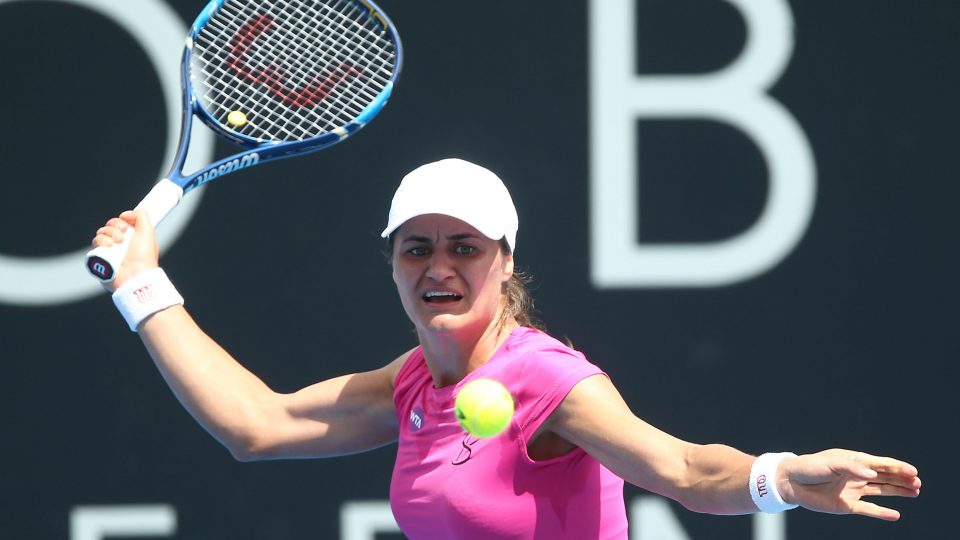 FOCUSED: Monica Niculescu tried to use her slice forehand to stop the winning run of qualifier Elise Mertens; Getty Images