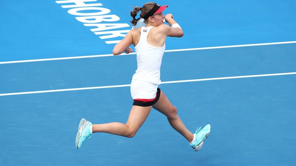 ON THE ATTACK: After a nervous start, Elise Mertens used her forehand to dictate points in the singles final; Getty Images