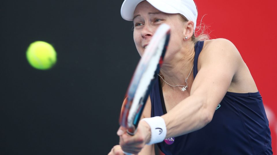 STRETCHED: No.11 seed Johanna Larsson of Sweden plays a backhand in her second round match; Getty Images