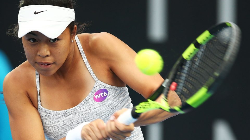 INTENSE: Australian wildcard Lizette Cabrera keeps her eye on the ball in the feature match of the evening session; Getty Images