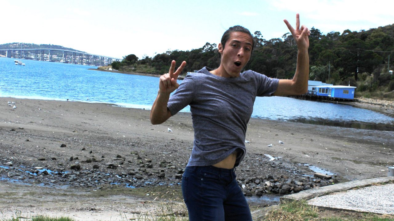 JUMPING FOR JOY: Grand Slam champion Francesca Schiavone explores Hobart’s Cornelian Bay.