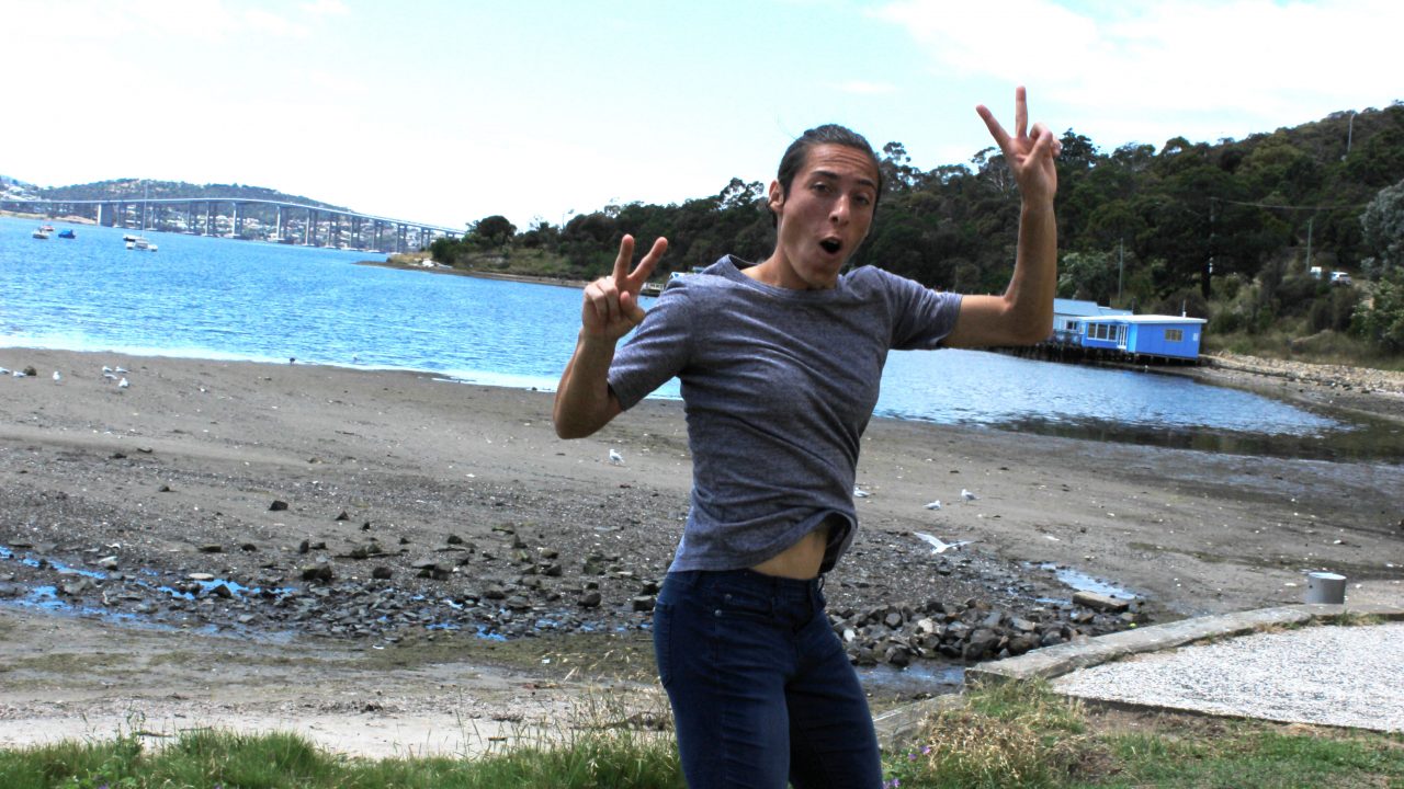 JUMPING FOR JOY: Grand Slam champion Francesca Schiavone explores Hobart’s Cornelian Bay.